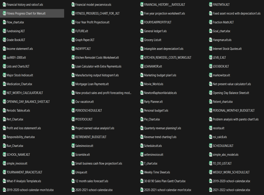 Here's a breakdown of the Excel template names thats are include in this Bundle: